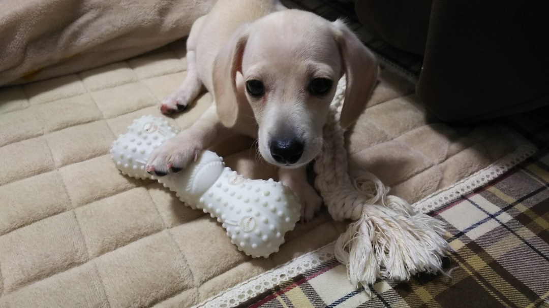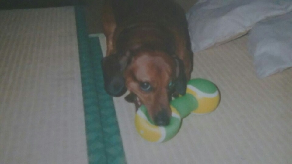マックがオモチャを取りに行くすがたを見てわらっていたり、自分のオモチャを取られていたり。