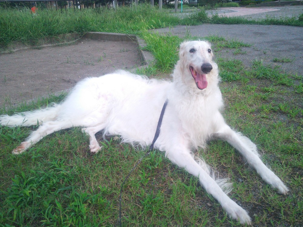 床ずれができる頃には、完全介護体制になりました。ボルゾイに合うおむつがなかったため、寝たまま糞尿を漏らすしかありませんでした。人間の介護用の使い捨てベッドシーツを敷いて対応しましたが、メープルは動けないストレスで、動く前肢で地面を蹴ってぐるぐると回転するので、シーツはすぐにボロボロになり、床ずれ保護のタオルも外れてしまい、どんどん床ずれが広がってしまいました。前肢だけで大きな体を動かそうとするので、指先は爪ごと擦れて血だらけ。毎日のように漏らしたうんちを体中にネリネリしていました。